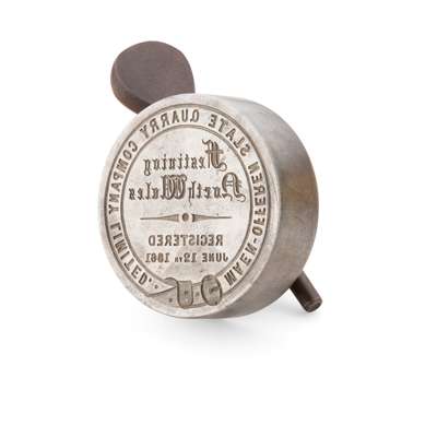 of circular outline, engraved to the border 'THE MAEN-OFFEREN SLATE QUARRY COMPANY LTD SEAL' the centre engraved ‘Ffestiniog/ North Wales/ REGISTERED/ JUNE 12TH 1861’