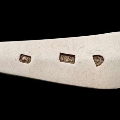 Marked thistle, I.E., boar's head, of Old English pattern, engraved initials W&F to terminal, each numbered to terminal (3)