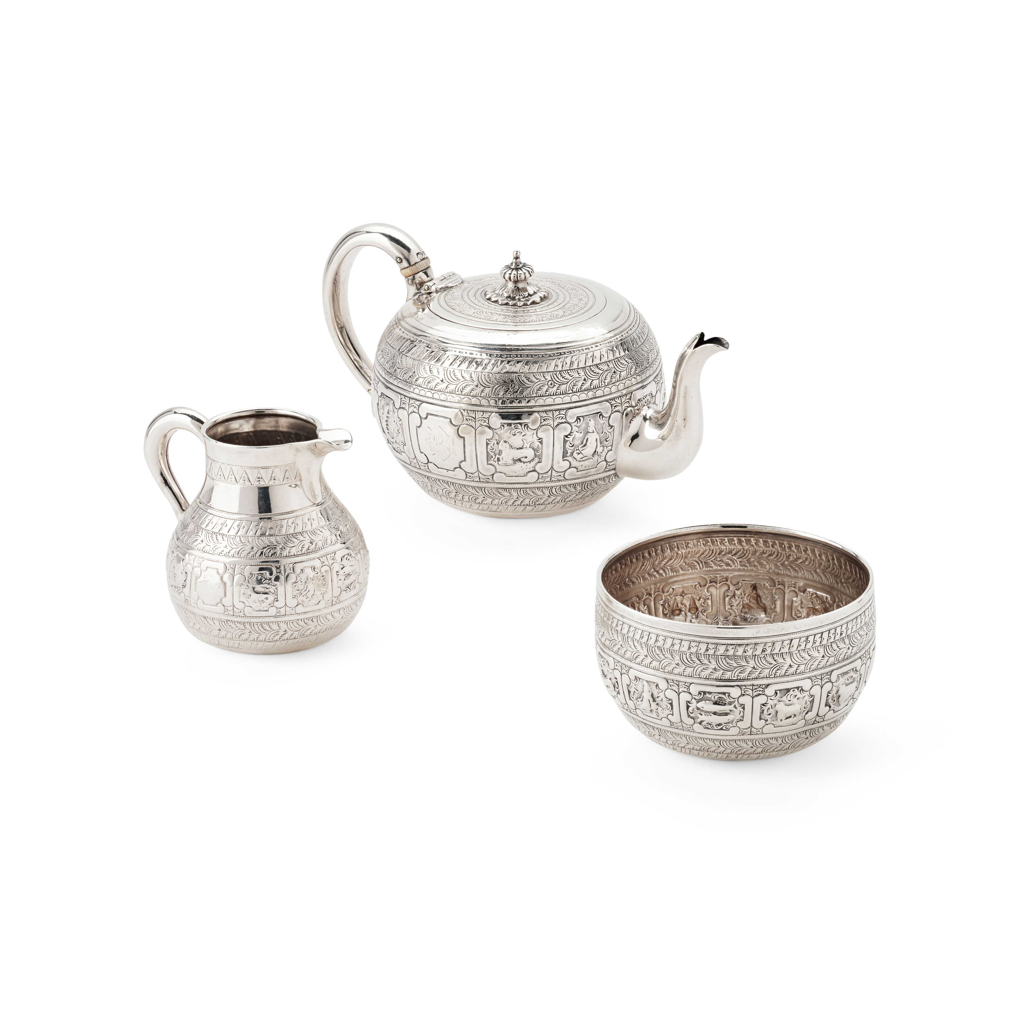 A MATCHED VICTORIAN BACHELOR'S ZODIAC THREE PIECE TEA SERVICE