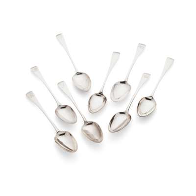 A SET OF EIGHT MATCHED GEORGE III OLD ENGLISH TABLE SPOONS