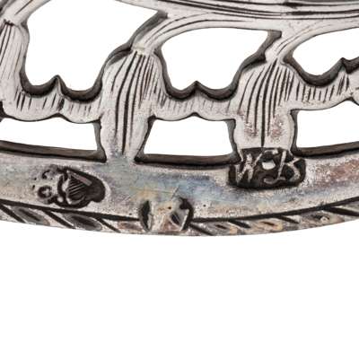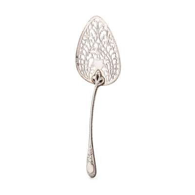 The pierced blade engraved with bird and floral motifs to a feather edge stem, with vacant cartouche to terminal, presented in a fitted case for Stephen Smith & Son… Covent Garden