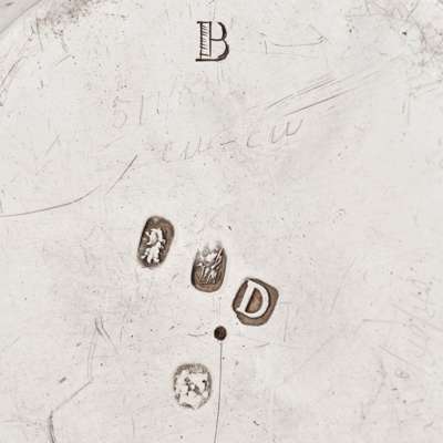 Of traditional form, the S-scroll handles with beaded detail, engraved B to underside