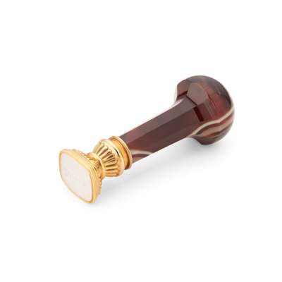 A LATE 19TH CENTURY BANDED AGATE AND GOLD DESK SEAL
