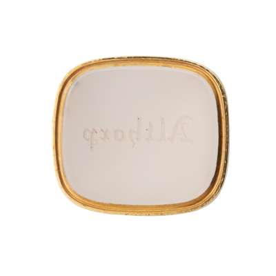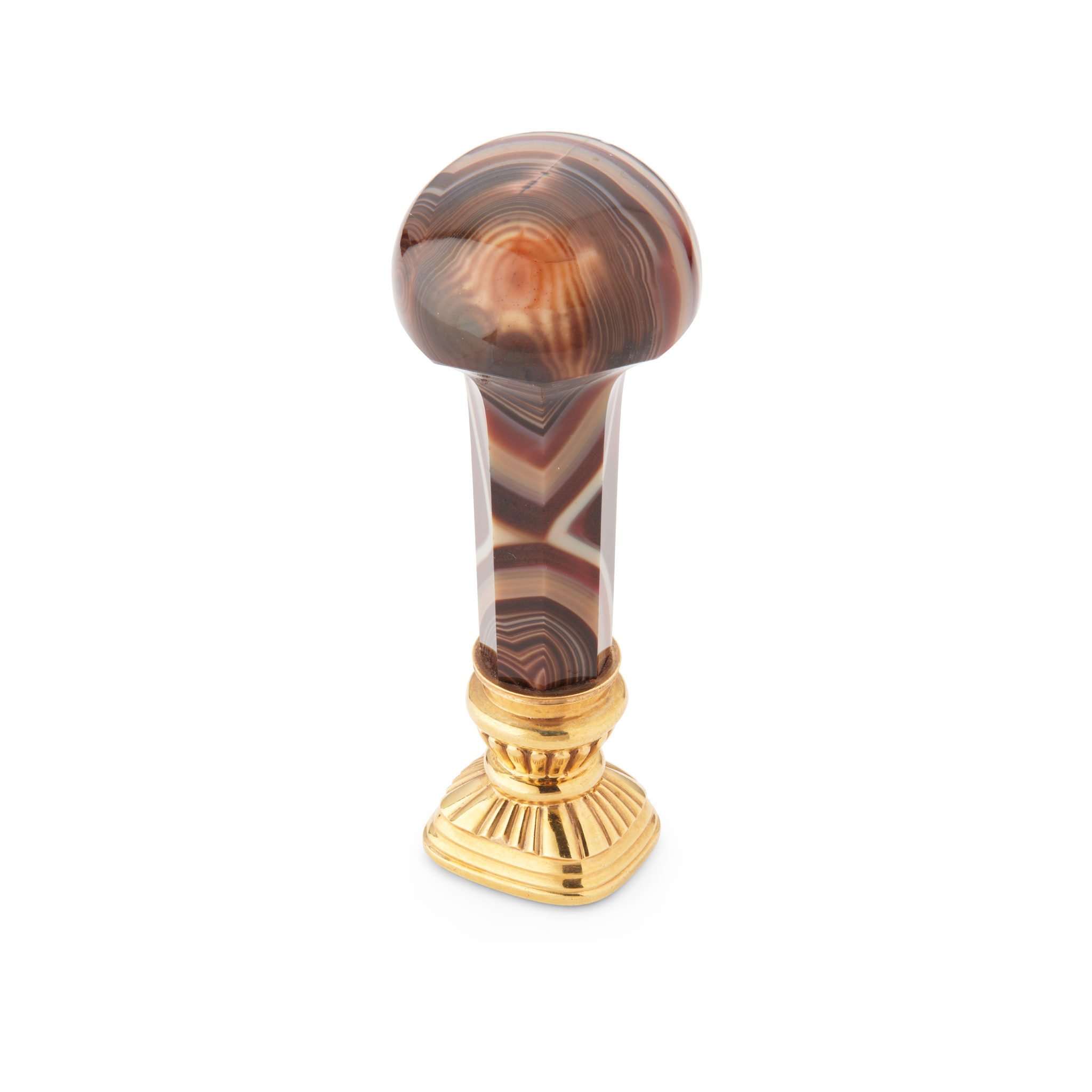 The facetted banded agate handle with a domed mushroom terminal, to a fluted gold collar, the white chalcedony matrix engraved ‘ALTHORP’