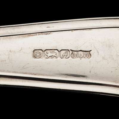 Comprising, carving set and knife sharpener, four serving spoons, eight table forks, eight dessert spoons, eight soup spoons, eight dessert spoons, eight teaspoons; together with eight fish forks, eight fish knives, eight table knives and eight side knives, all of variant La Regence pattern (qty)