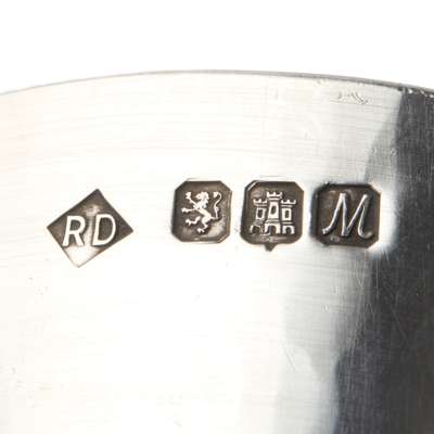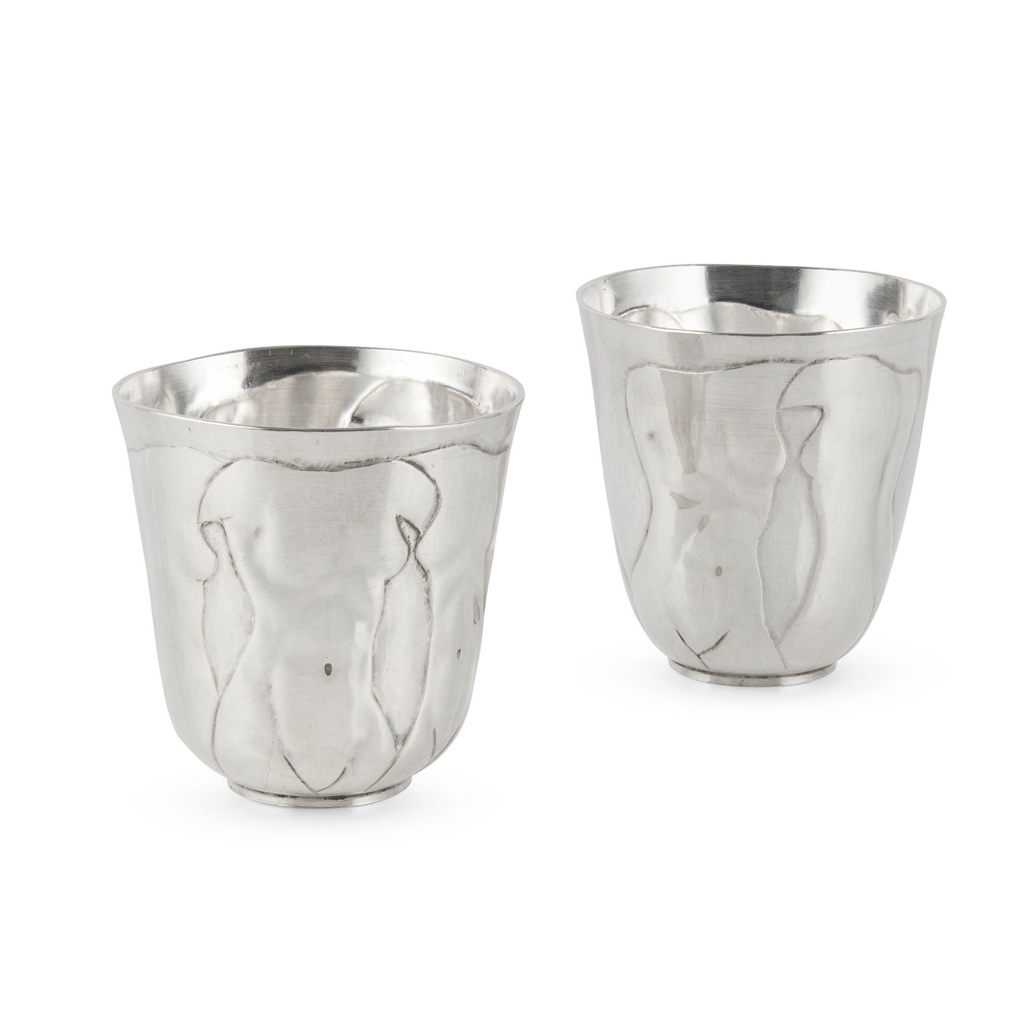 Each of slightly tapered form, chased with two pairs of nude forms, raised on a circular foot (2)