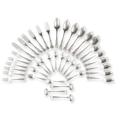 A MATCHED SUITE OF GEORGE IV AND LATER KING'S PATTERN FLATWARE