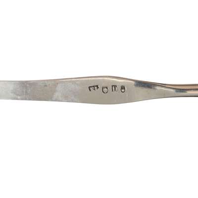 Each marked EL, heart, D, heart, of traditional form, feather edge to both with one engraved W, the part twisted baleen handle with simple cap finial (2)
