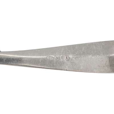 Marked AMcL, INS, device struck twice, of Fiddle pattern with engraved script initial S to terminal; together with another, James Douglas of Dumfries, marked ID, device thrice, possible crowned heart, of Celtic Point pattern, italic J engraved to terminal (2)