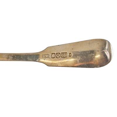 Comprising twelve tablespoons, twelve table forks, twelve dessert forks, twelve dessert spoons, twelve teaspoons, all of Old English pattern, engraved initials to terminal; together with twelve silver-mounted side knives and twelve silver-mounted table knives; six teaspoons, Josiah Williams & Co, Exeter, 1869 and six teaspoons, JW, Edinburgh 1853, of Fiddle pattern, engraved B to terminal (96)