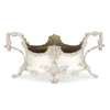 Of oval outline, cast swag border, angular handle with floral motifs, pierced shell details throughout, raised on two out-turned scroll bracket feet and two in-turned bracket feet; together with an associated brass liner