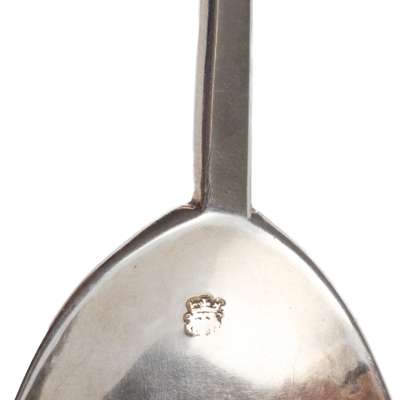 Of traditional form, the plain bowl wriggle engraved WC to the reverse, to a plain stem, the parcel gilt finial modelled as The Master, the nimbus embossed with the Saint Esprit