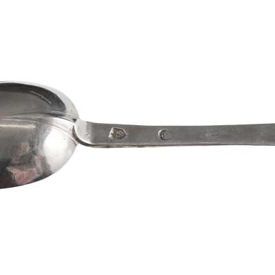 Of traditional form with rat-tail bowl, the reverse of the terminal prick-engraved *A*/*T*E*