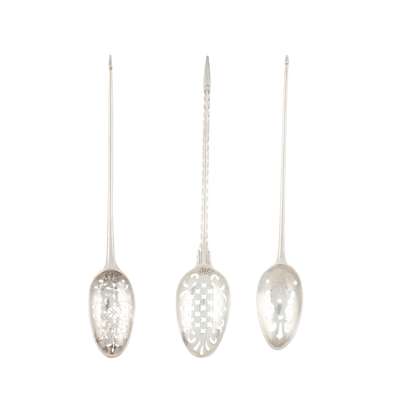 A COLLECTION OF THREE GEORGE II MOTE SPOONS