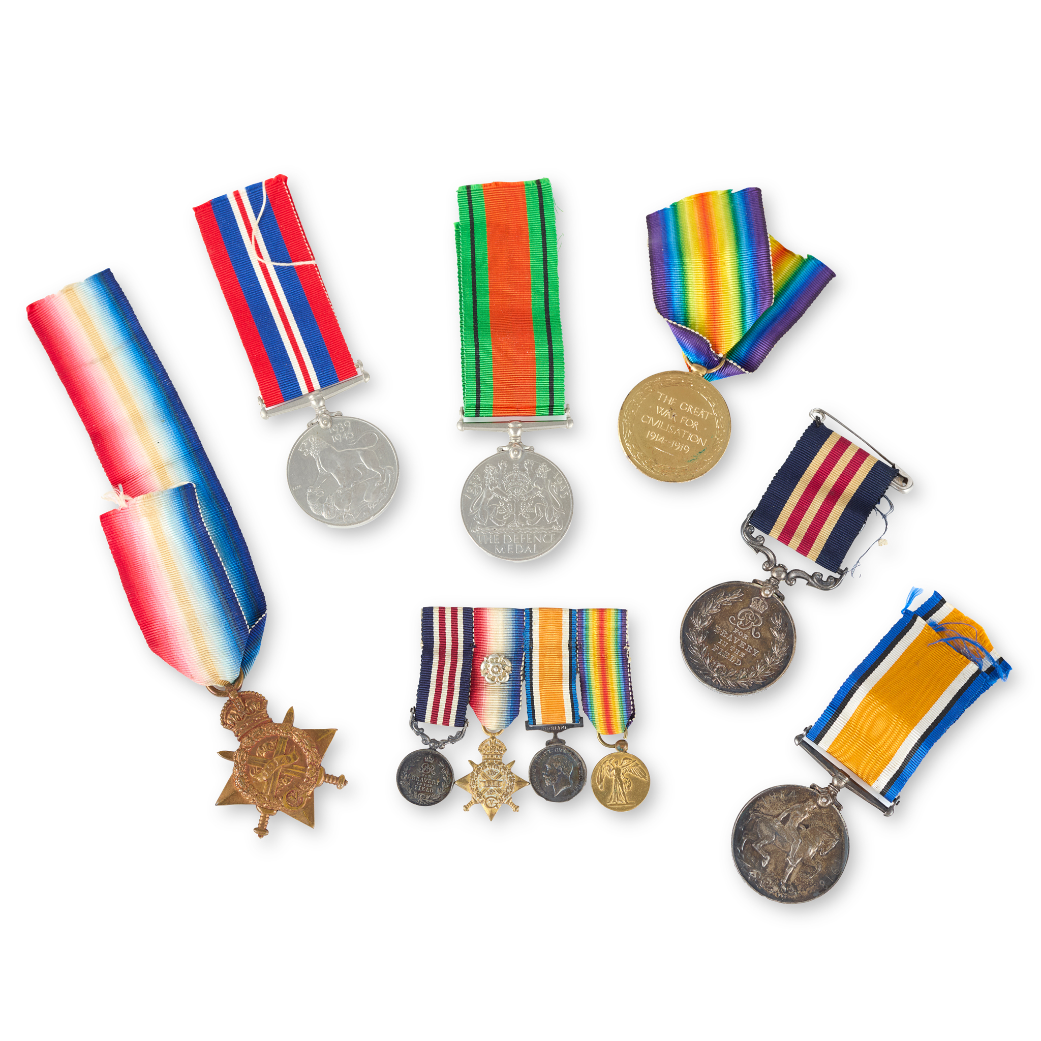 Comprising, Military Medal, 1914 star with rosette (both named to 8722 Sjt A. Murray, Cam'n'highrs), War Medal and Victory Medal, (named to 2 Lieut A. Murray. RAF) with WWII War Medal and Defence Medal (un-named); and studio photograph of recipient in uniform showing M.M. ribbon, and matching miniatures