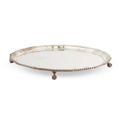 Of circular outline, gadrooned border, raised on four claw and ball feet