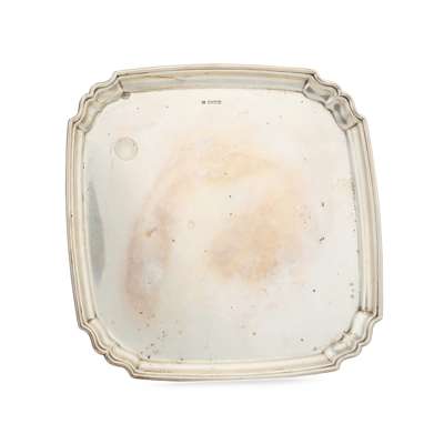 Of square outline, moulded corners, raised on four shallow bun feet