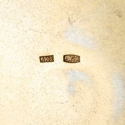 A 20TH CENTURY SOVIET ERA RUSSIAN SWING-HANDLED ENAMEL SALT CELLAR