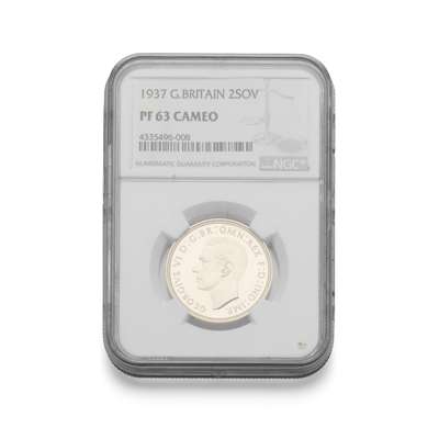A 1937 gold proof £2 coin in GCBS slab