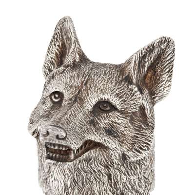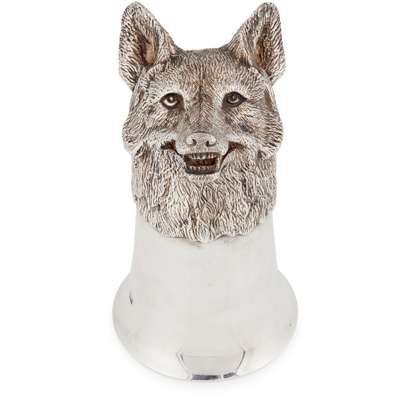 P H Vogel & Co, Sheffield 1973, modelled as a fox's head, with flared rim and feature hallmarks, the head modelled naturalistically, in a fitted presentation case