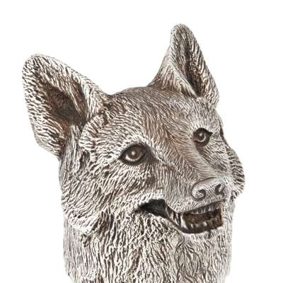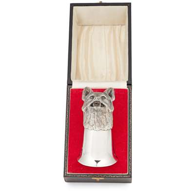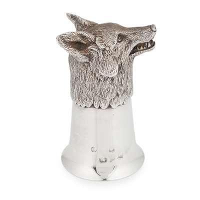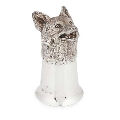 P H Vogel & Co, Sheffield 1973, modelled as a fox's head, with flared rim and feature hallmarks, the head modelled naturalistically, in a fitted presentation case