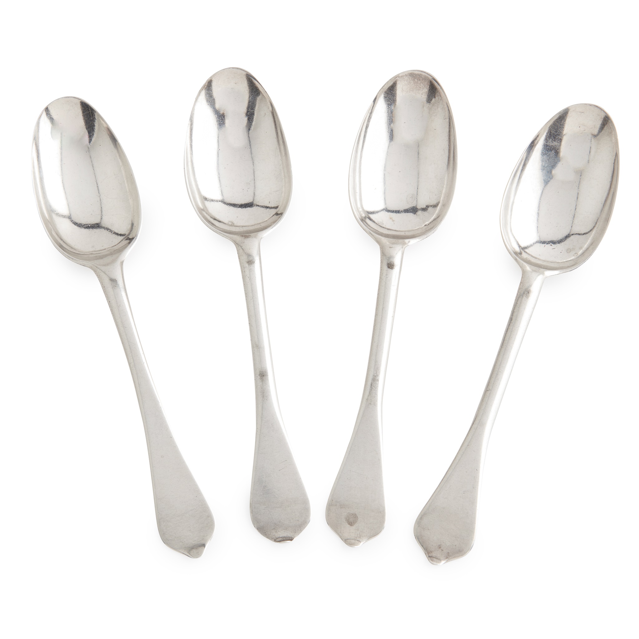 A matched set of four 18th-century continental dog-nose tablespoons