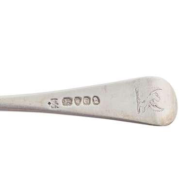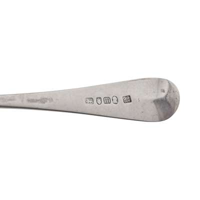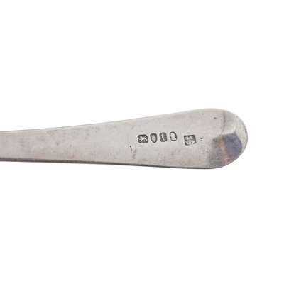 mainly George Smith (III) & William Fearn, London, comprising, a soup ladle, three serving spoons, five sauce ladles, sixteen tablespoons, twelve table forks, eleven dessert forks and one teaspoon, with crest engraved to terminal