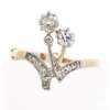 of scrolling design, claw set with two graduated old round cut diamonds, set throughout with smaller old mine cut and eight cut diamonds, to a plain yellow metal shank, marked 585