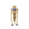 with French control marks, makers mark EG, the swivel clip formed as an armorial panel, with a Marquis coronet set pearls, faux rubies and emeralds, above an enamel double shield with lion supporters, scrolling framework with suspended chains, the outer chains each with a lapis intaglio suspension, the centre chain with locking hoop for a watch or pendant