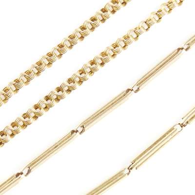 the first composed of fancy belcher links, with continental marks, possibly Austro-Hungarian, to clasp; the other composed of fancy baton links, with control marks (2)