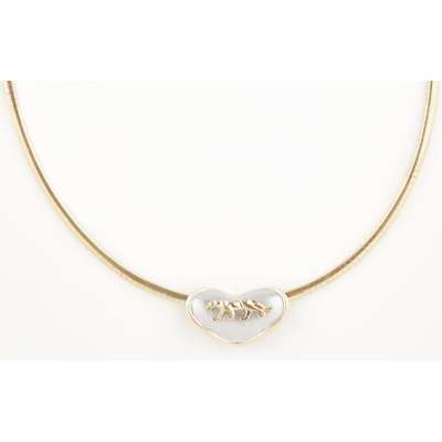 the silvered heart with applied jaguar detail, to an articulated snake link necklace, clasp and safety clip stamped 14Kt ITALY