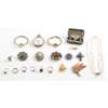 to include a seed pearl, sapphire and diamond floral spray brooch stamped 585; together with two cultured pearl necklaces, two cameo set rings; a rolled gold gentleman's pocket watch and dress set; six costume and various brooches rings and wristwatches (qty)