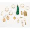 to include a channel set diamond ring, stamped 750, a pair of tassel yellow metal earrings stamped 750, a pair of hooped earrings stamped 9ct, a 9ct metal wedding band, a pendant marked 750; together with a collection of unmarked yellow metal jewellery, a pair of cameo earrings, and a hardstone pendant (qty)