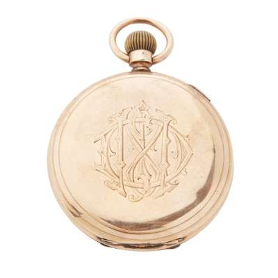 full hunting case, engraved monogram, keyless wind, dial signed, subsidiary seconds dial, movement numbered 17317015 and named 'Traveler'