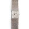 with a curved square dial, silvered finish, baton indicators, small diamonds to the quarters, integral textured bracelet with fold over clasp, manual movement, possibly 1970s
