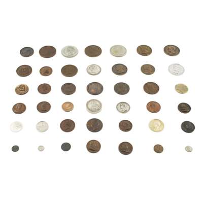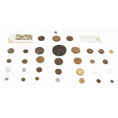 to include; bronze, silver, silver gilt medals, Royal Mint commemorative medal for the tercentenary of birth of John Harrison; bronze for Colin MacLaurin mathematician to Agnes Gray 1925; bronze 1986 Halley's comet; gilt bronze for Sir Roderick Impey Murchison, prize medal; bronze for Gottfried Wilhelm von Liebniz, mathematics; Pascal, mathematics and physics (2); silver and bronze for Dalton; white metal, Marc Isambard Brunel commemorating opening Thames Tunnel 1843 and another small in brass; Bronze commemorating death of Sir Isaac Newton by Dassier; Silver Isaac Newton Glasgow University medal by Wyon; silver, oval Royal Society of Edinburgh to John F W Herschel, mathematician 1820; bronze, Royal Cornwall Polytechnic Scociety Henry Lumley; gilt, Royal college of Science celebrating Thomas Henry Huxley to Robert Cedric Knight 1922; a limited edition bronze medal of 25 designed by Christopher Dean to mark the bi-centenary of Sir Humphrey Davy, inventor of the Davy Lamp (12cm diameter). a small group of tokens and coins. Part listed with a full SET OF IMAGES OF ALL COINS AND MEDALS AVAILABLE ON REQUEST, OTHERWISE PERSONAL VIEWING ADVISED (qty)
