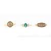 to include, an 18ct gold five stone diamond set ring, a diamond set cluster ring stamped 18CT and an 18ct gold emerald and diamond ring, modelled as a bow (3)