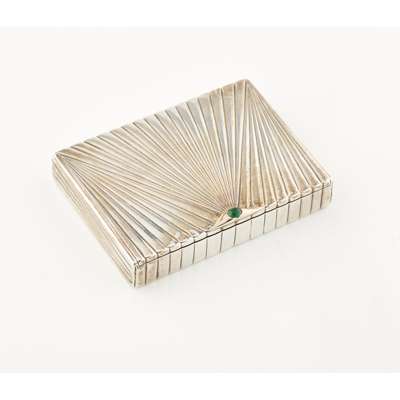 marked to interior 81, the rectangular box with fan shaped rib detail, cabochon stone set to cover