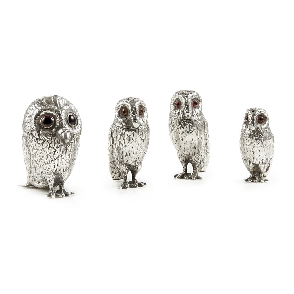 A matched set of Victorian Owl condiments