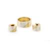 the bi-coloured ring set with four small round cut diamonds, unmarked, together with a pair of earrings, of hoop form also set with three small round brilliant cut diamonds, stamped 18ct 750