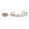 the bangle of open form, composed of a single row of stylised G's, one of which set with round brilliant cut diamonds; together with a ring of matching design, both stamped 750 (2)