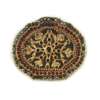 the main celadon coloured jade ground with engraved script to the rear, the front with applied gold and gem set trailing floral pattern, the outer border set with rows of turquoises and other coloured gem cabochons