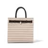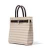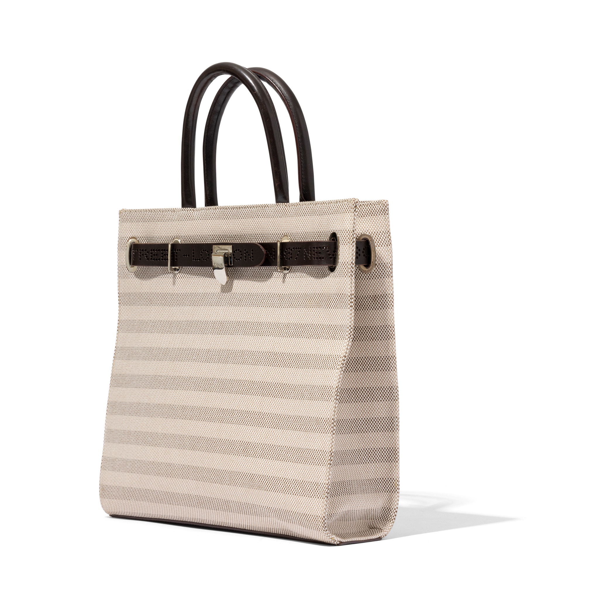 Striped grey canvas, brown leather