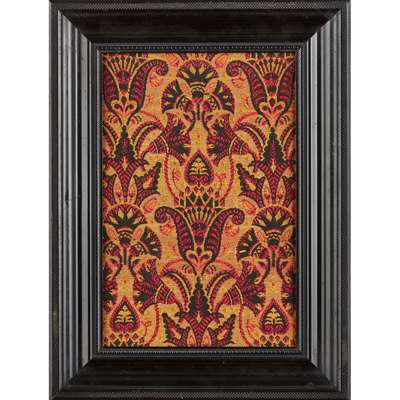 one depicting a repeat pattern of flowering foliage in the 'Modern Gothic' style, original frame, 42.5 x 17cm; the other in the Egyptian revival style, period frame, 29 x 19cm (2)