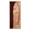 depicting the Classical figure of a water carrier, embroidered in chain stitch on a gold brocade ground and reserved on a later velvet ground with gilt braid trim