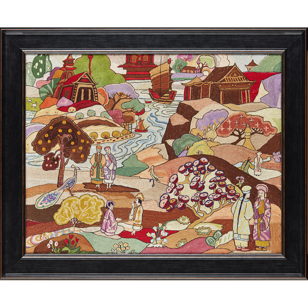 EMBROIDERED SILKWORK PANEL, ENGLISH CIRCA 1880