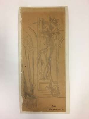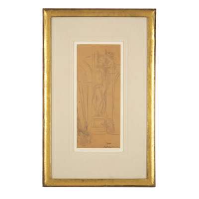 Signed and inscribed 'New Bedford Music Hall' lower right, indistinctly inscribed lower left, pencil, crayon and ink on brown paper