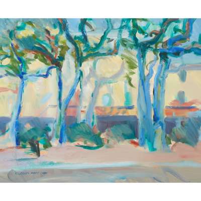 The mountain town of Vence is situated in Provence. Irene Lesley Main travelled widely throughout her career, but her interpretation of her subject was always inspired by the work of the Scottish Colourists.
