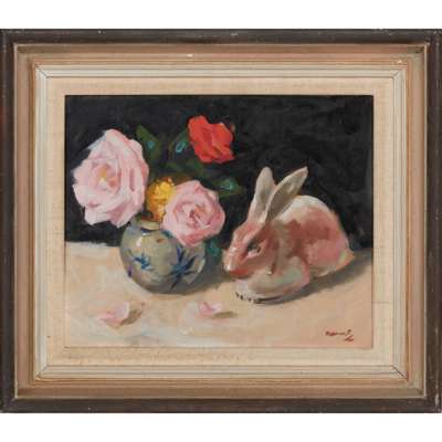STILL LIFE WITH ROSES AND PORCELAIN HARE