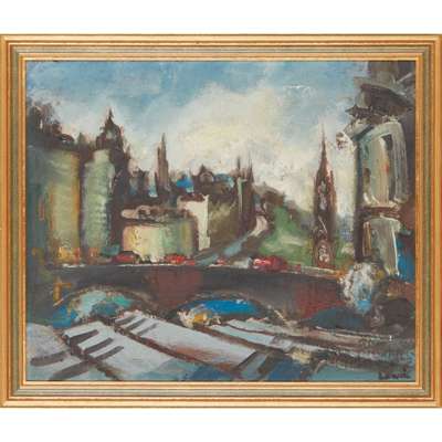 A note verso states that this painting was purchased from Hamish Lawrie's studio on Tarvit Street, Edinburgh in the 1950s.